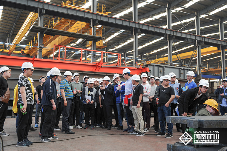 來河南礦山實習(xí)的同學(xué)們,每到一處都仔細看,認真聽,詳細做筆記,積極思考,踴躍提問,將所學(xué)理論知識與現(xiàn)場生產(chǎn)實踐相結(jié)合,對起重機產(chǎn)品的工藝技術(shù)和應(yīng)用領(lǐng)域有了更進一步的了解。