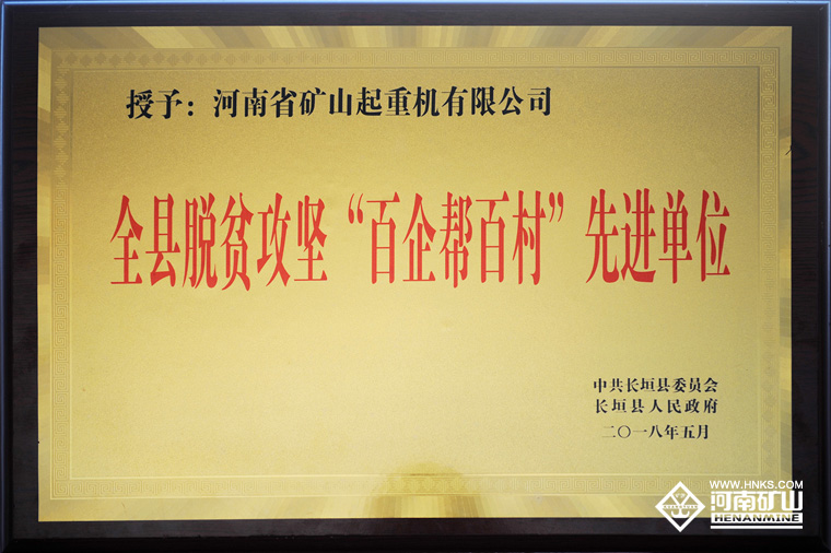 2018年5月9日下午,長垣縣召開“長垣縣脫貧攻堅第七次推進會議”,會議表彰了在扶貧攻堅工作中做出突出貢獻的集體和個人,河南礦山獲得“全縣脫貧攻堅百企幫百村先進單位”稱號。