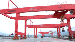 近日,河南礦山為蘭州國際港務(wù)區(qū)設(shè)計制造的兩臺CMJ40.5T-35M A8軌道式集裝箱門式起重機(jī)正式投入使用。