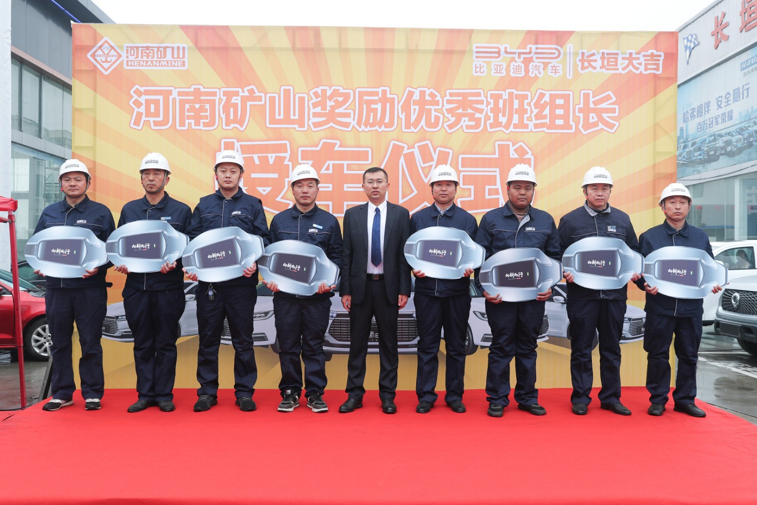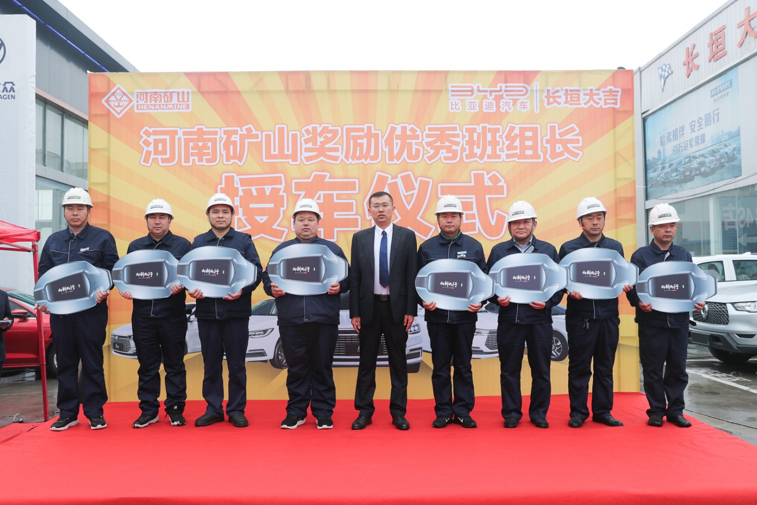 3月11日,河南礦山獎(jiǎng)勵(lì)**班組長(zhǎng)授車(chē)儀式在長(zhǎng)垣大地亞飛汽車(chē)城內(nèi)隆重舉行。公司24名一線**員工得以重獎(jiǎng),每人獲得一輛純電動(dòng)比亞迪全新秦EV。據(jù)悉,該批車(chē)市場(chǎng)總價(jià)值420余萬(wàn)元。
